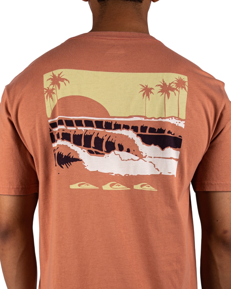 Mens Stacked Line Up Short Sleeve-Orange