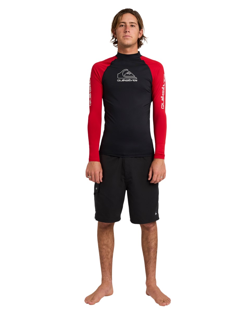 Mens On Tour Long Sleeve Rash Vest-Red